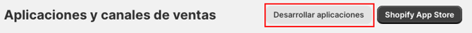 4.3. Al final de la pantalla, seleccione la opción "Configuración de aplicaciones y canales de venta" y luego "Desarrollar aplicaciones".![]()
